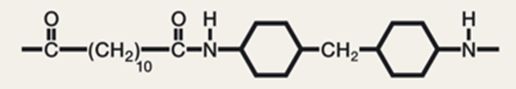常見的透明尼龍種類有 PA MACM12、PA 12/MACMI、PA 6I/X 等等。由于環(huán)狀結(jié)構(gòu)或側(cè)鏈結(jié)構(gòu)的單體選擇較多,因此幾乎每個牌號的透明尼龍組成都不盡相同。